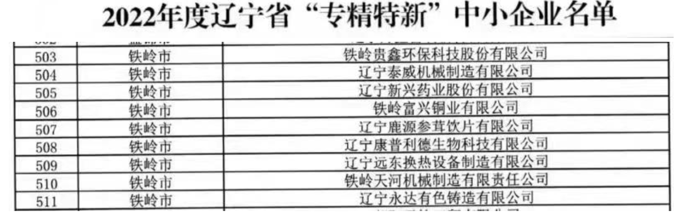 富興銅業(yè)評為2022年度遼寧省"專精特新"中小企業(yè)